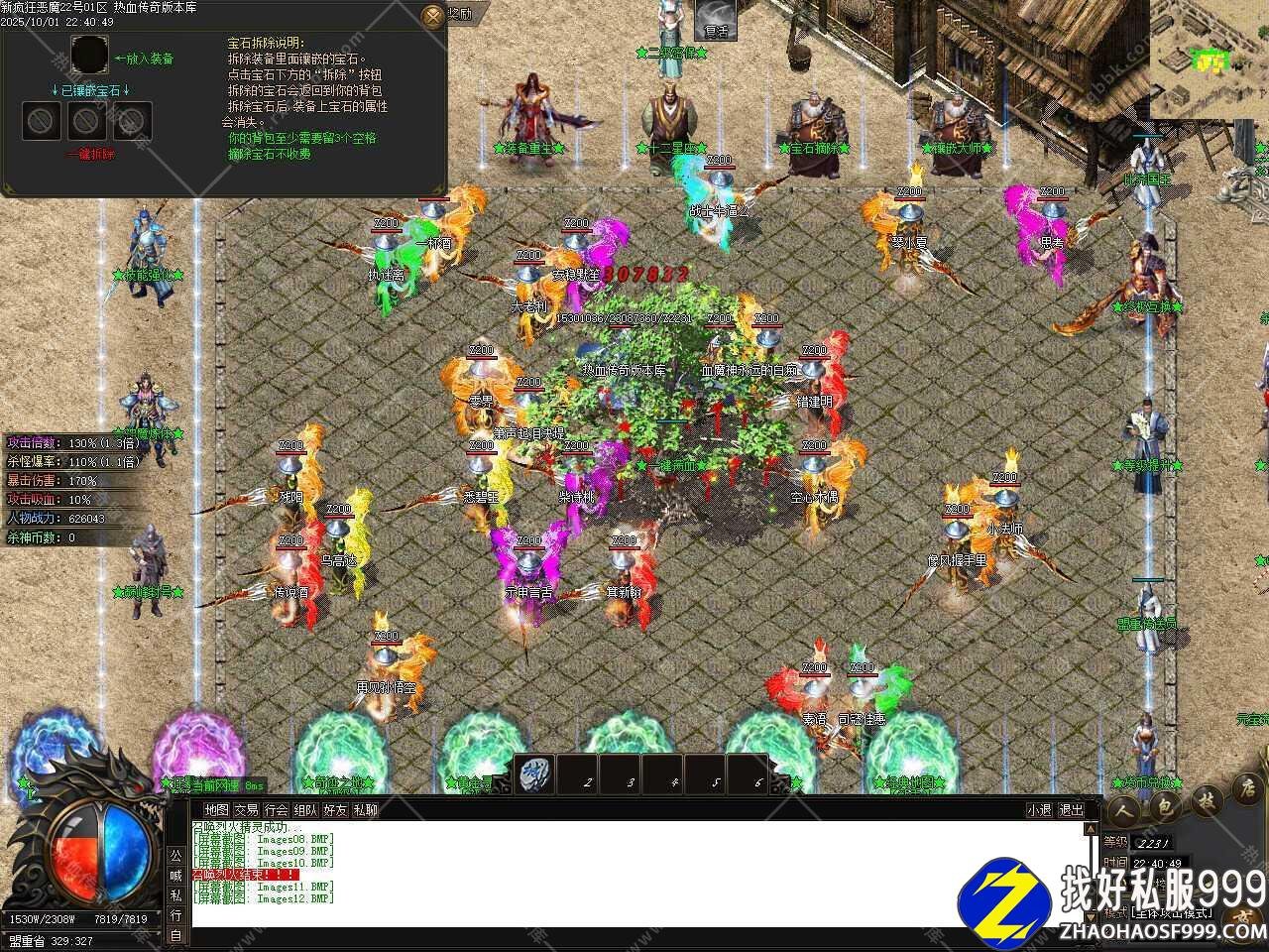 六、新增镶嵌大师,可以给装备镶嵌宝石,橙宝石暴击几率增加;蓝宝石增加伤害减少;红宝石增加人物体力;绿宝石增加攻魔道倍数,宝石获得所有BOSS均有掉落,每件装备可镶嵌3个不同类型的宝石。