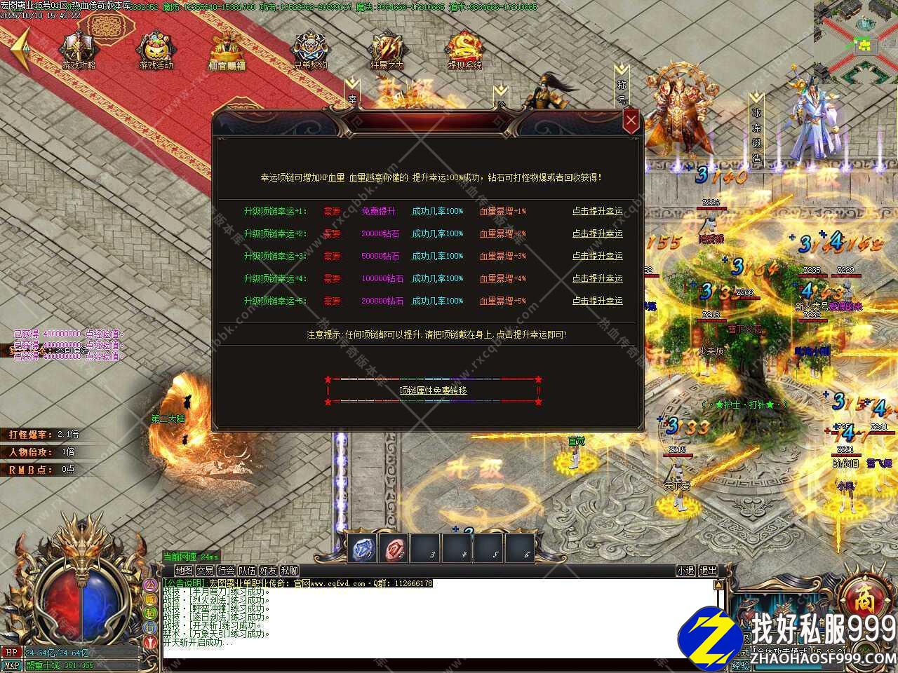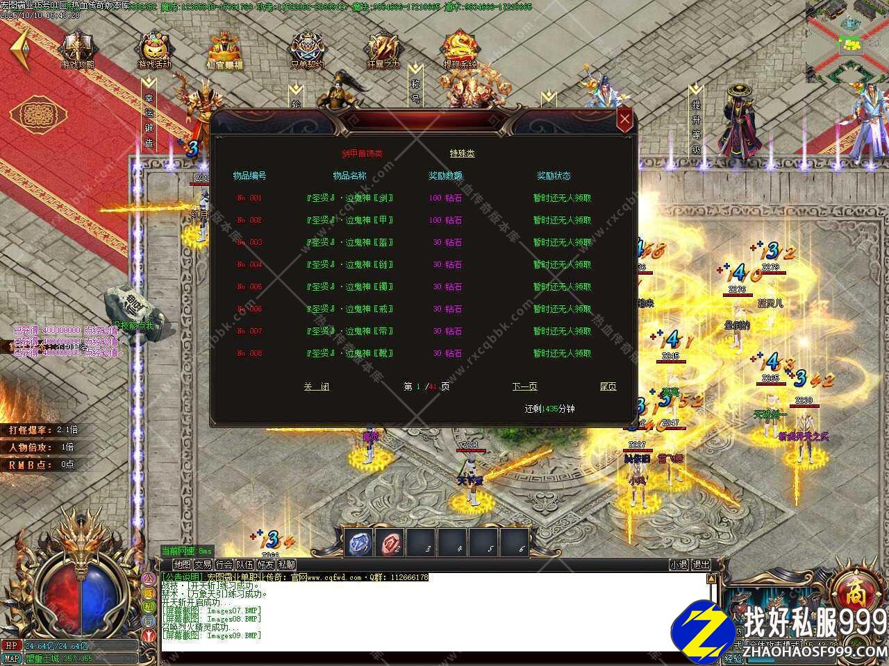 四、此传奇版本元宝可在土城左边升级切割,钻石可提升称号以及打怪冰冻神器,随处泡点到500级后,每个怪物必爆等级丹,可在土城正上方提升等级,可进等级地图。