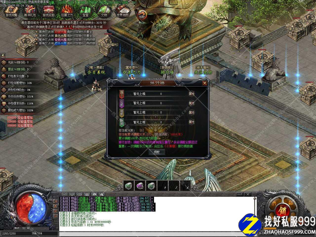 四、开放狂暴之力功能,激活狂暴之力需求100游戏点,被玩家打掉后会失去狂暴之力称号,对方获得50游戏点,攻城区域,被怪物打掉,狂暴之力称号不会消失,激活元宝回收加成50%、打怪伤害增加30%、全属性增加10%、全元素增加2%,激活后可获得技能十步一杀,攻击时有机率禁锢敌人2秒。