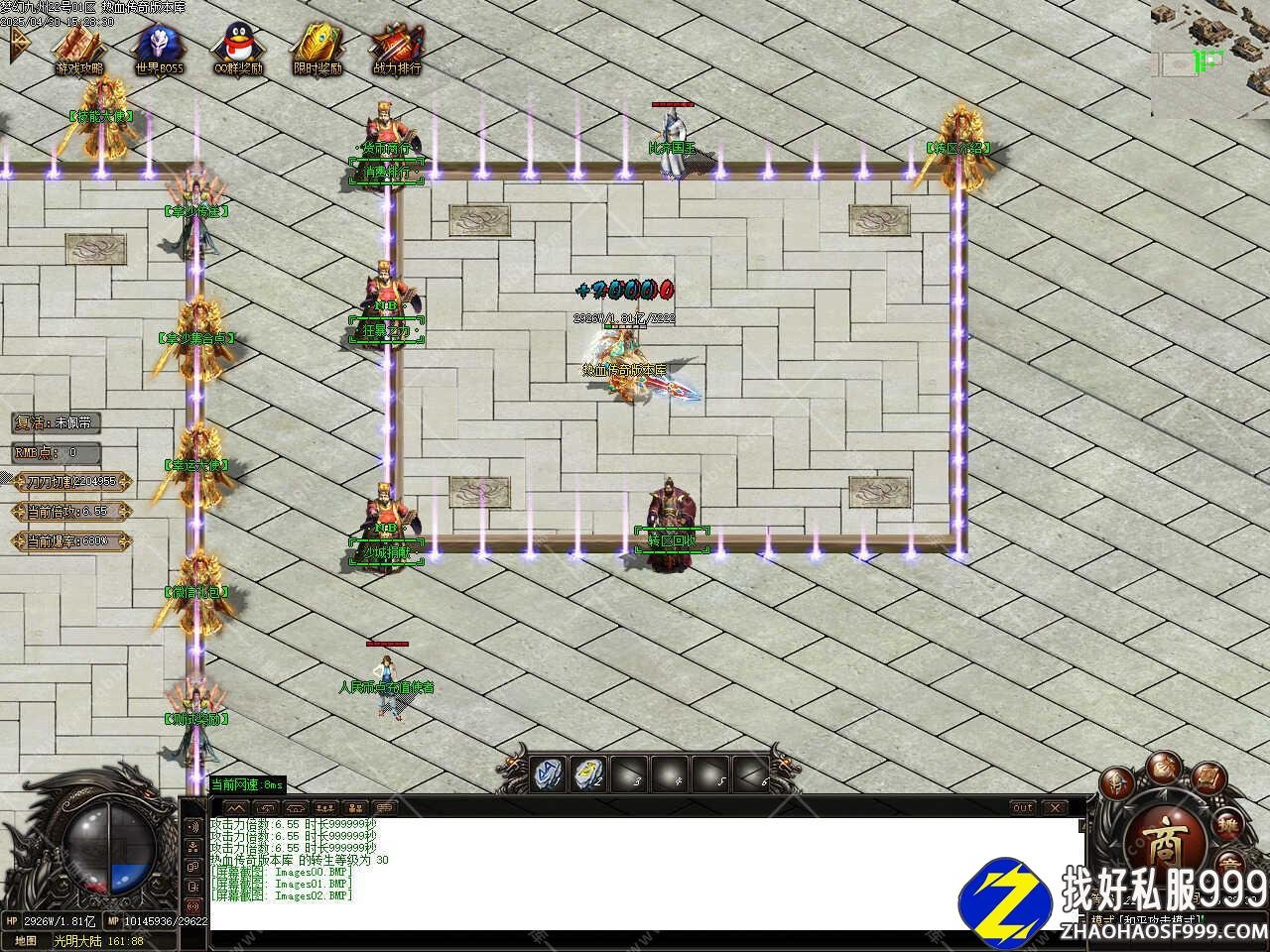 版本介绍:此版本在线泡点到100级之后土城转生升级到120级,进二大地图渡劫升级到130级(建议血量超过80W再去渡劫)打魔王88个可在而大地图召唤魔王BOSS必爆狂暴符经验丹。