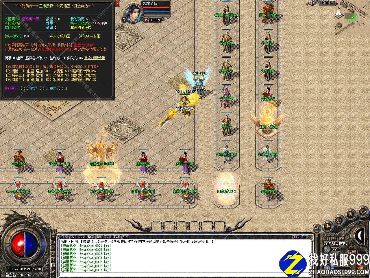 版本介绍:沙城捐献可获得怪物切割+2%,还有专属捐献地图,此地图BOSS云集(前期无等级必备地图)。