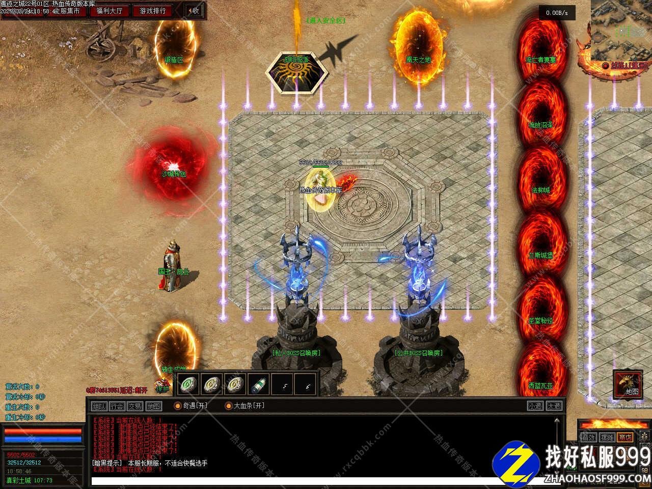 版本介绍:版本采用全新脚本方式制作,画面清爽,地图超多,玩法多样,用心制作的一款传奇版本,新手上线升级去怀旧地图是个不错的选择,本服大量功能在F10按钮处查看。