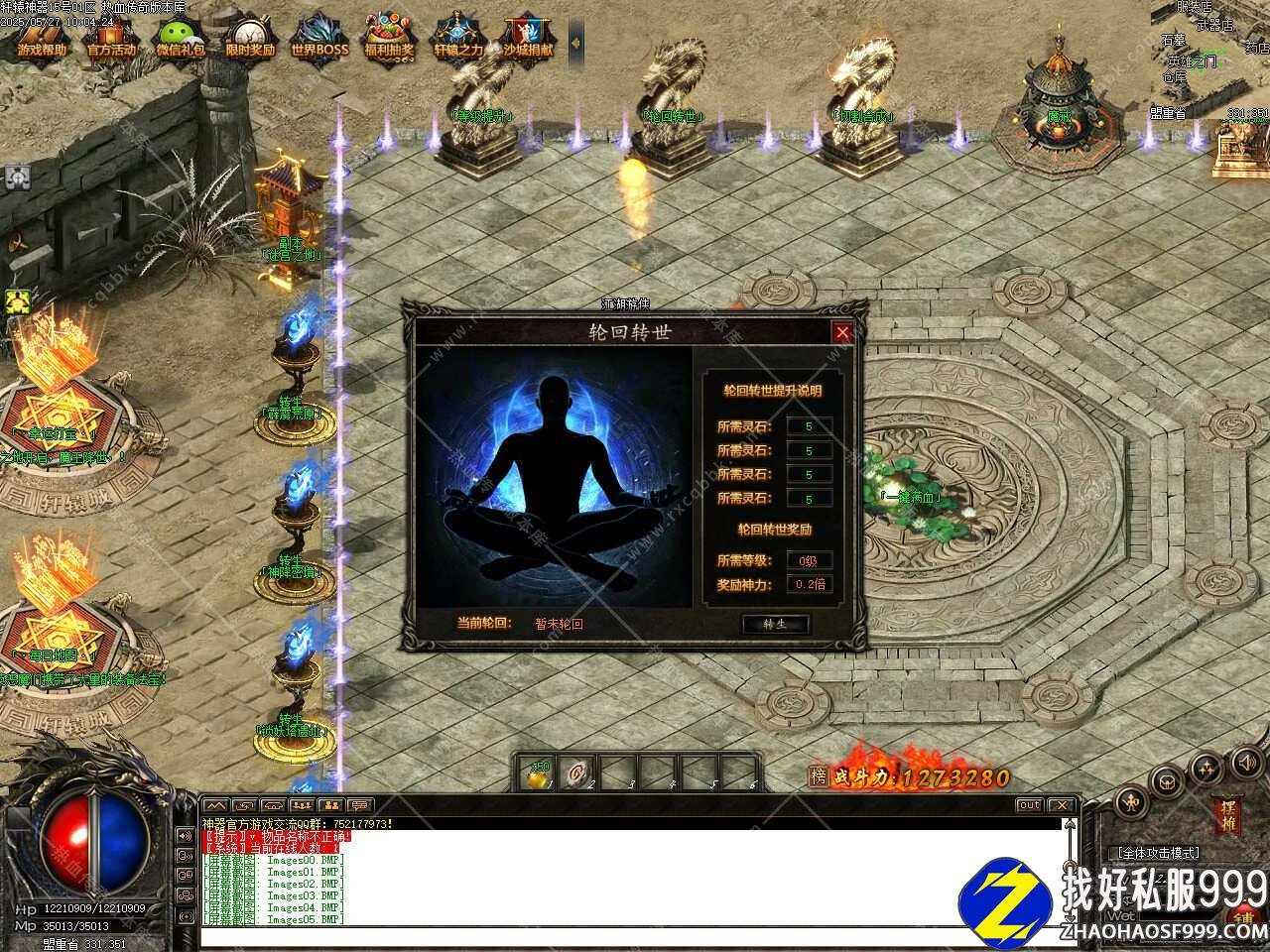 四、添加霹雳荒原转生地图,此地图也是散人前期发展必经之地,刷新BOSS福利神兽,爆各种初级装备、元宝、特殊和转生材料,需要人物达到8转免费进入,本服为长久服,所有装备全部靠爆出,更多玩法请进服体验。