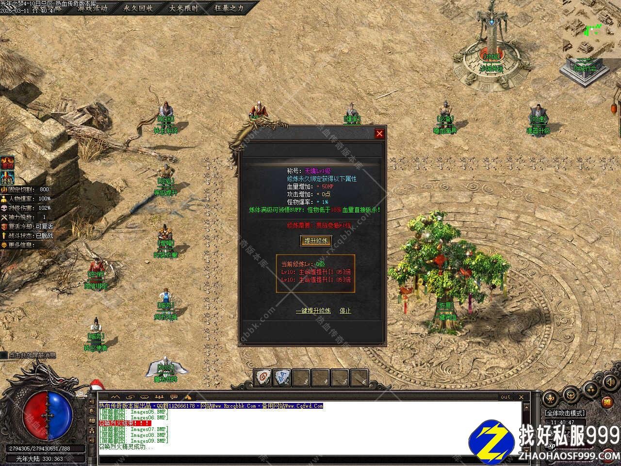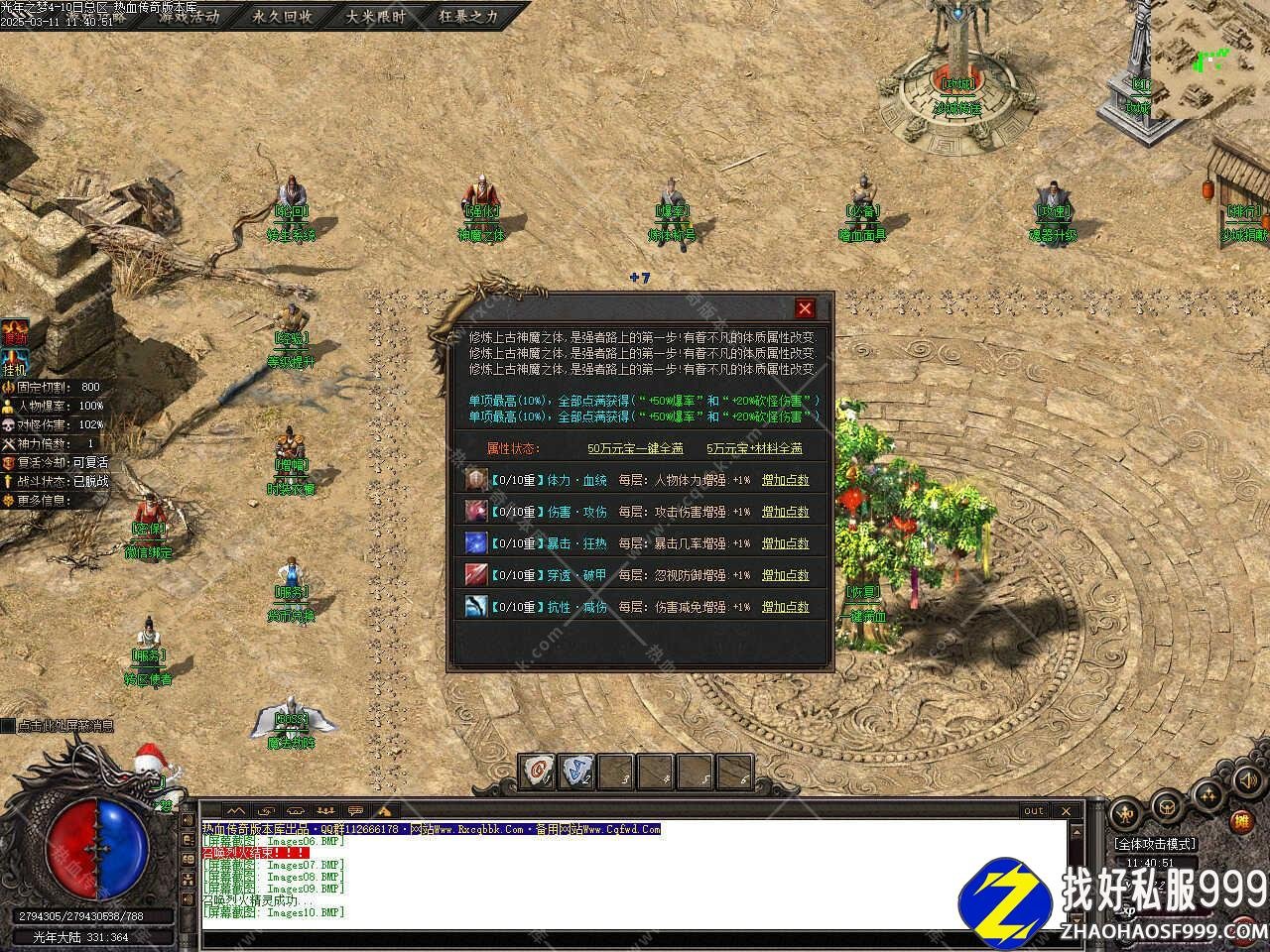 版本介绍:新增奇遇占卜功能,打掉任意地图怪物,均有几率触发奇遇,光的奇遇几率+3%,获得属性打怪爆率加100%,年的奇遇几率+5%,获得属性对怪伤害加20%,之的奇遇几率+10%,获得属性暗神力提升1.2倍,梦的奇遇几率+15%,获得属性刀刀切割+5000,每次占卜消耗50W元宝。