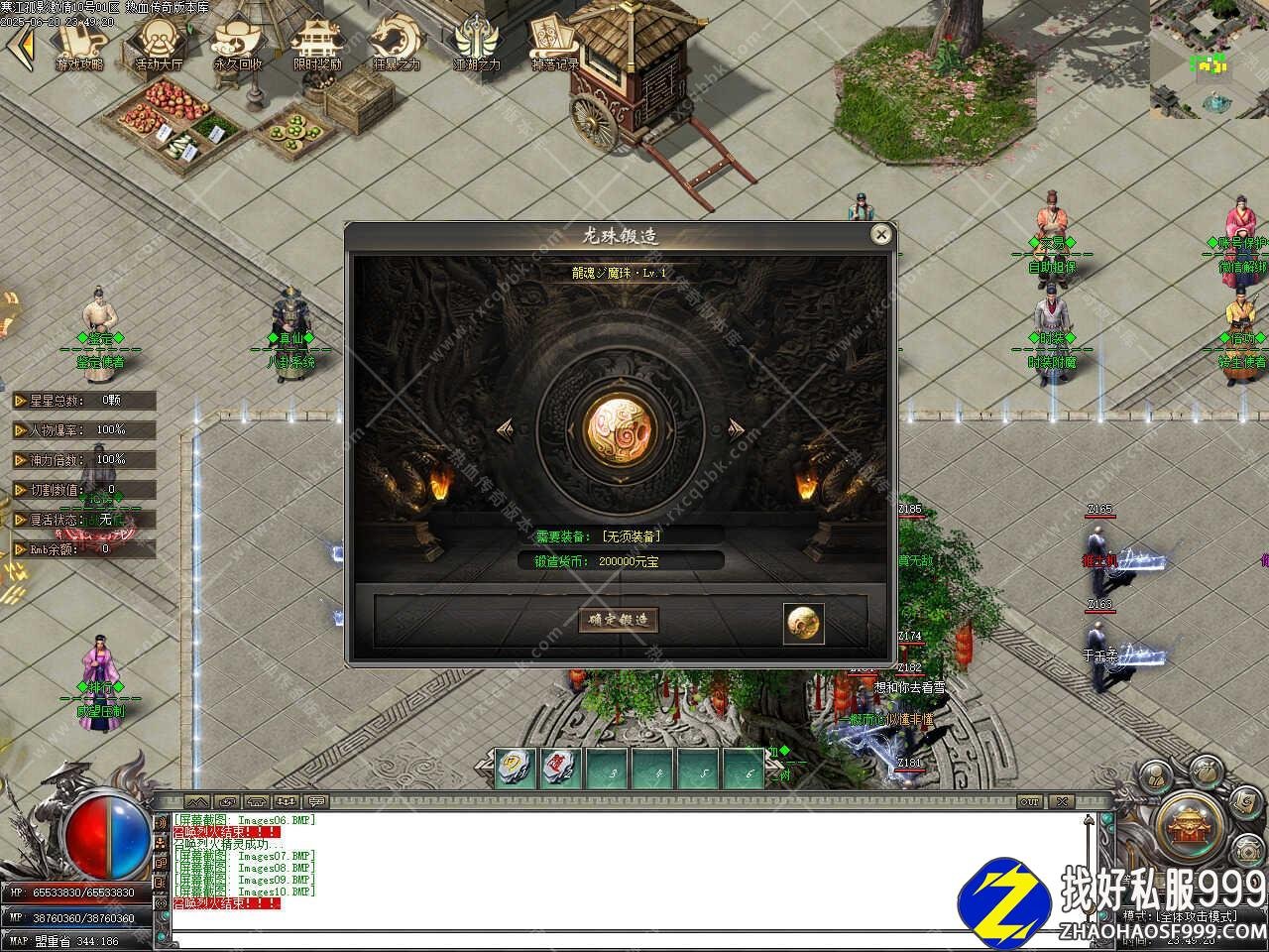 六、新增提升魔魂圣玉NPC,最高可以提升7级,每级提升需要点满攻击,防御,血量才可以提升下一级,等级越高给予的属性越厉害,对应的级别设置对应的专属地图,BOSS超多。