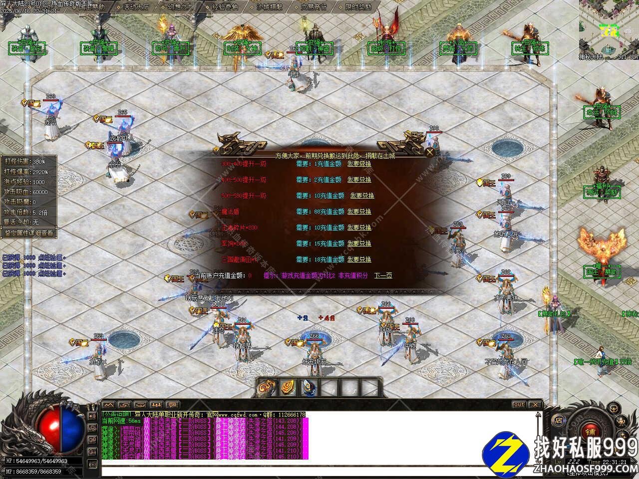 四、此服务端等级提高到999级,本次更新等级难度降低,不在强调等级得重要性。装备BUFF大幅度优化,所有属性BUFF全部重做,不会再有火影装备秒掉其它装备套的问题,PK更均衡。