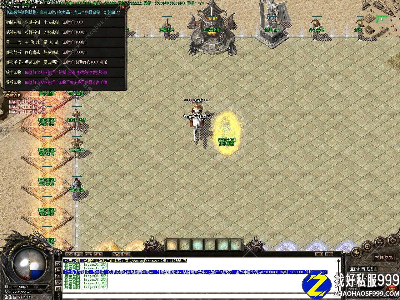 四、新手上线先升35级40级左右,带好宝宝,去新手地图,首推玛雅皇宫,此版本中所有BOSS均爆出顶级首饰,衣服,武器,我们增加了装备回收。