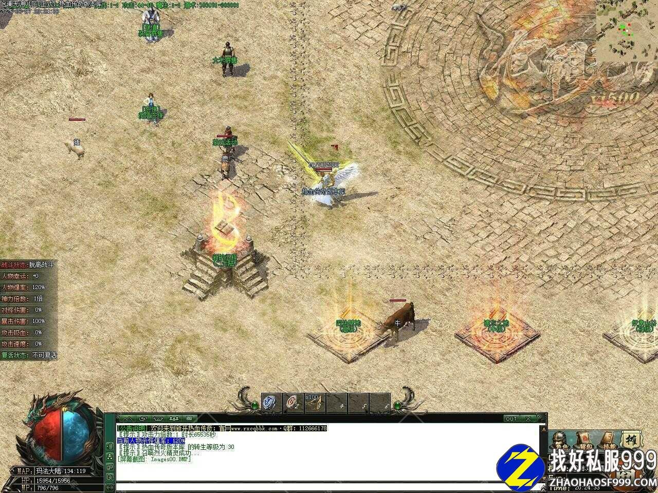 版本介绍:全新游戏设置,为了新区人气,版本设置多个地图开区时间大于3小时地图不再刷新怪物。