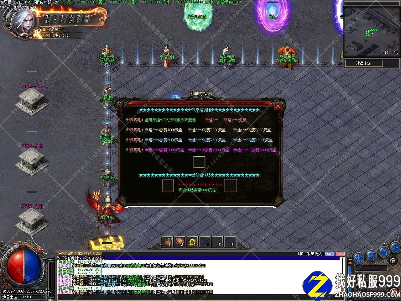 三、新增装备变异功能,变异规则:相同2件没有变异的装备可以在我这里变异,首饰盒,生肖,特殊4格不可变异.只能变异图片显示的装备.3种变异方法如下:【免费变异】2个相同的装备+30个变异石+600荣誉点,成功率40%。失败装备破碎消失。【金币变异】2个相同的装备+40个变异石+5000W金币+1200荣誉点,成功率65%。失败装备破碎消失。【元宝变异】2个相同的装备+50个变异石+15000元宝+2000荣誉点,成功率100%。不会失败。注:装备变异后【初始属性*2,隐藏属性*2,套装属性*2】!装备变异后扔地上重新拾取后就有鉴定属性!