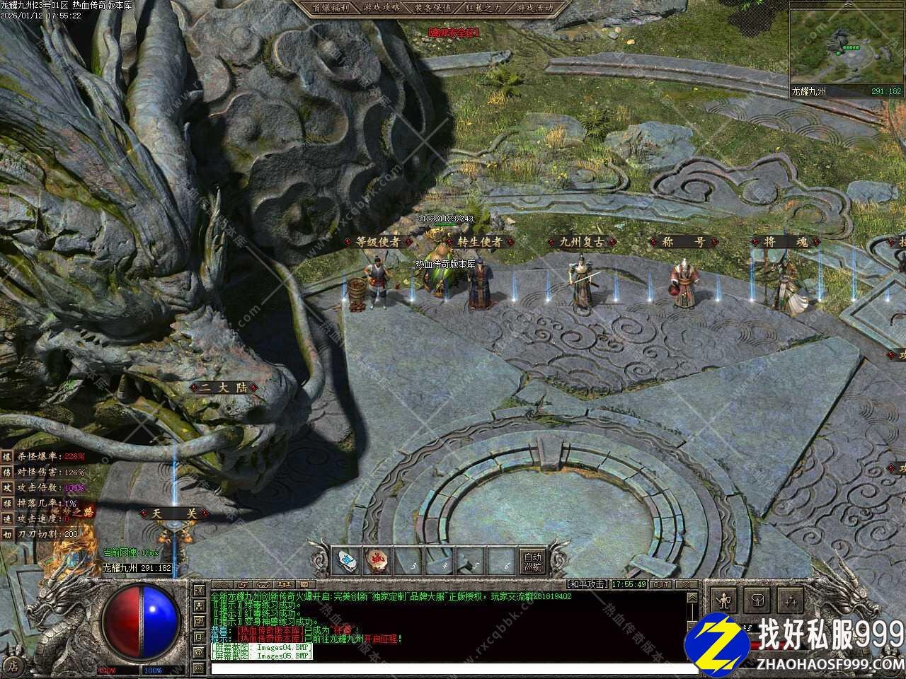 二.本服升级很快,打怪速升级到80,打到聚灵珠可以在等级使者那里升级,等级使者NPC所在位置在一大陆龙耀九州290 184处。同时转生也不难,一大陆转生处只要打青龙神石即可,转生使者NPC所在位置在一大陆龙耀九州292 184处。