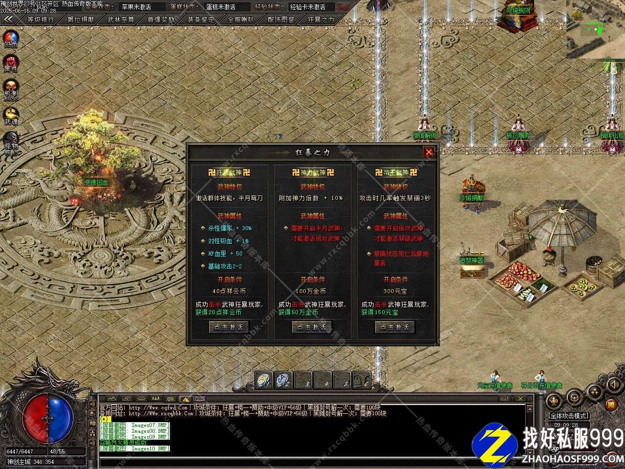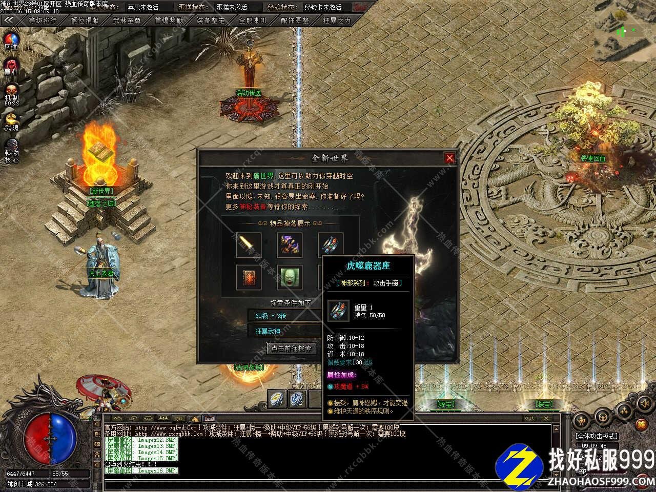 三、新增装备强化功能,成功率50%,强化一次需要金币3000万、加星强化卷50个,全套强化+8激活全属性+6%,打开NPC点击对应装备位置,可选择强化部位。