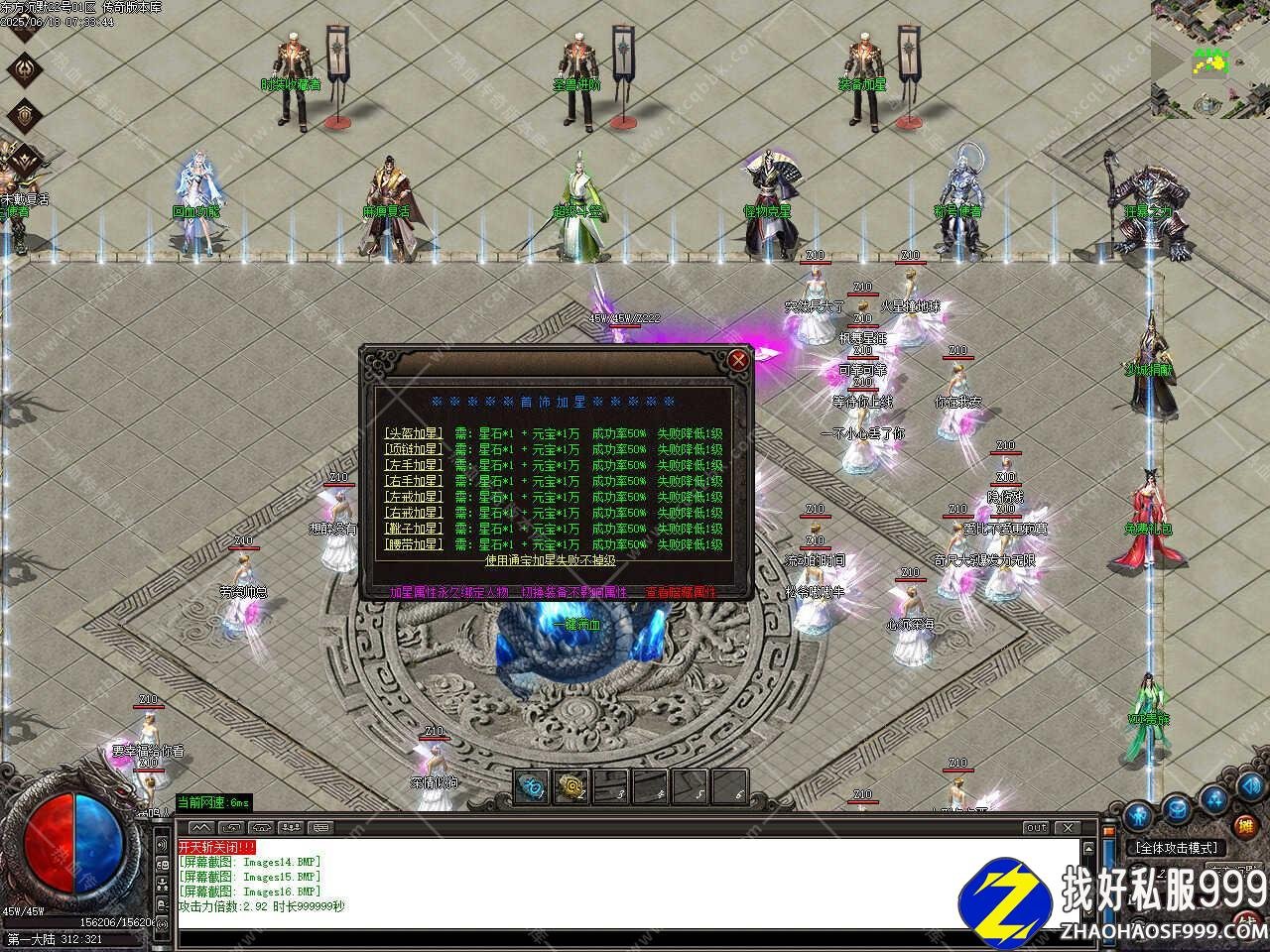 四、新增装备加星功能,头盔、项链、手镯、戒指、腰带、靴子都可以加星升级,每颗星对怪切割+100,最高16星,使用通宝加星失败不掉级,加星属性永久绑定角色,切换装备不影响属性。