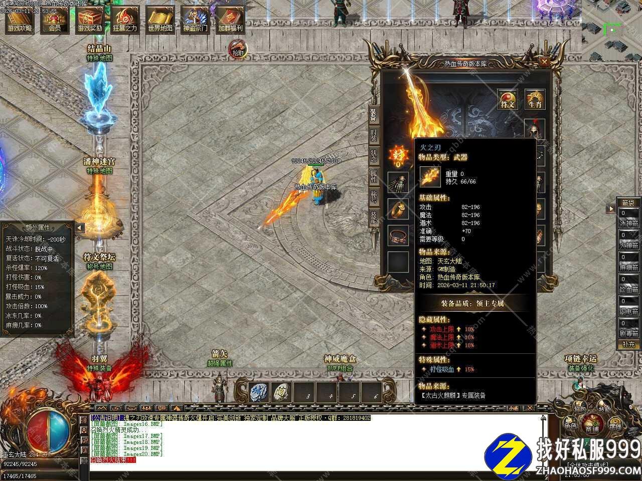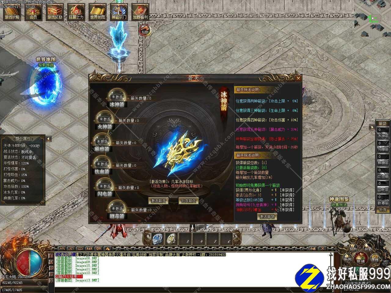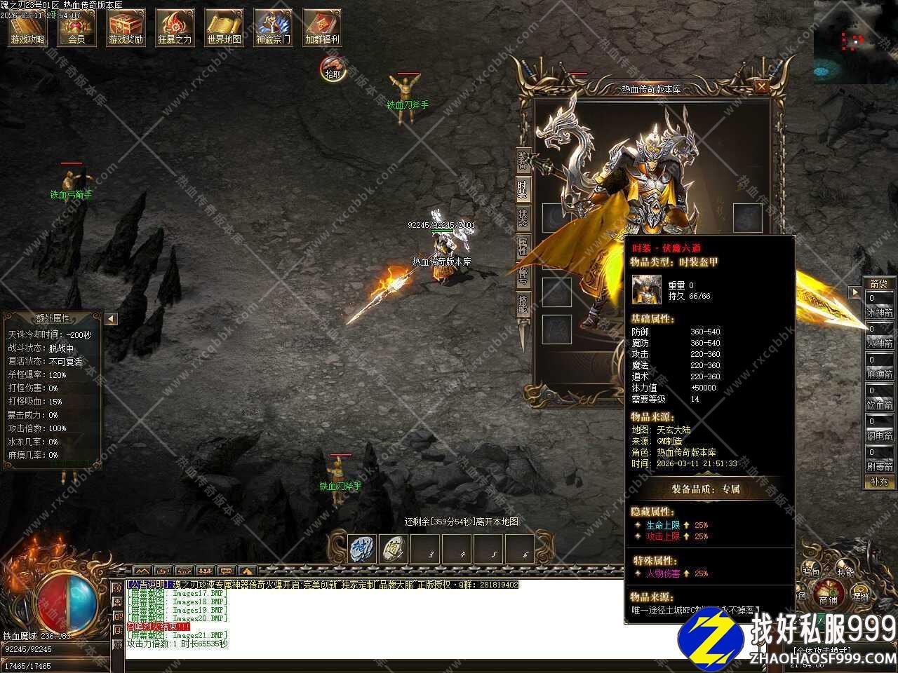 五.添加神榜争霸活动,每天18:30开启,进入通道开放5分钟,18:35关闭进入通道,进入神榜争霸地图后,自动提升[2000%]爆率,直到地图内只有最后一名玩家时即可刷新一只超级BOSS,爆率十分可观,拥有富豪称号者即可进入。