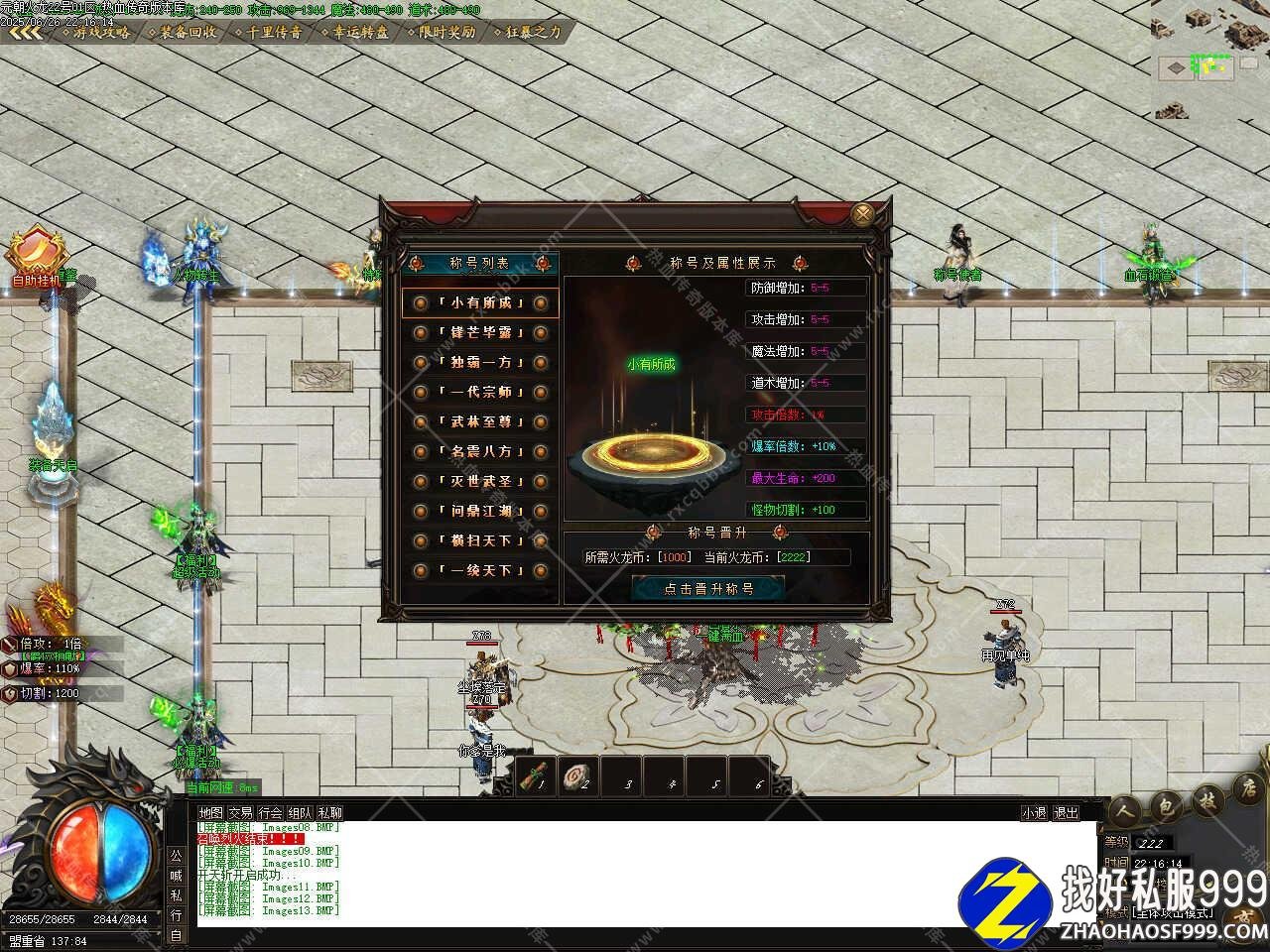 七、此版本中称号比较有用,增加人物属性、切割、爆率,打怪爽歪歪,武林至尊和一统天下称号都有专属地图。