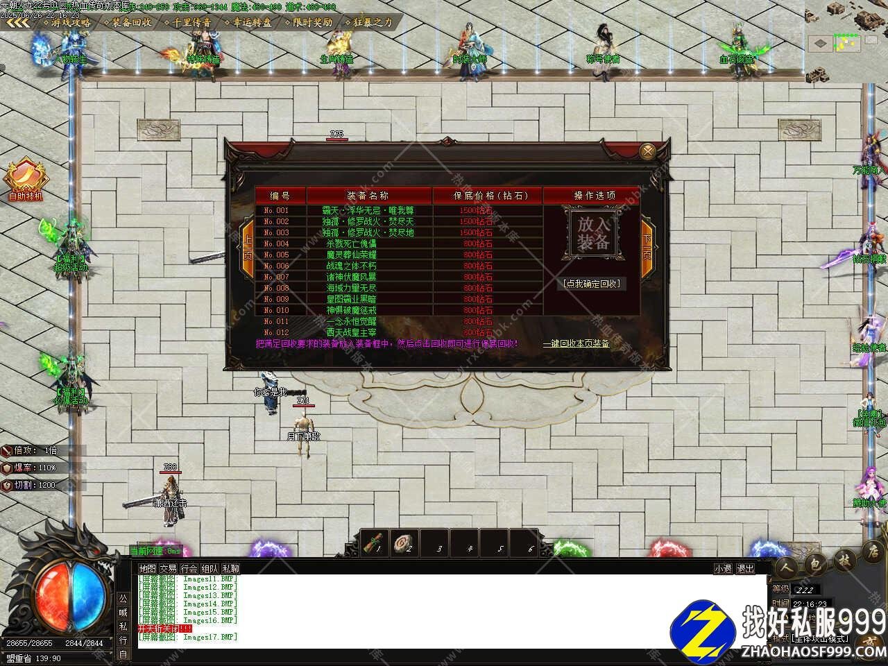 六、新增随身泡点、装备回收功能,打怪都可以获得大量经验,还可免费或者收费开启经验宝箱,本服封顶130级。