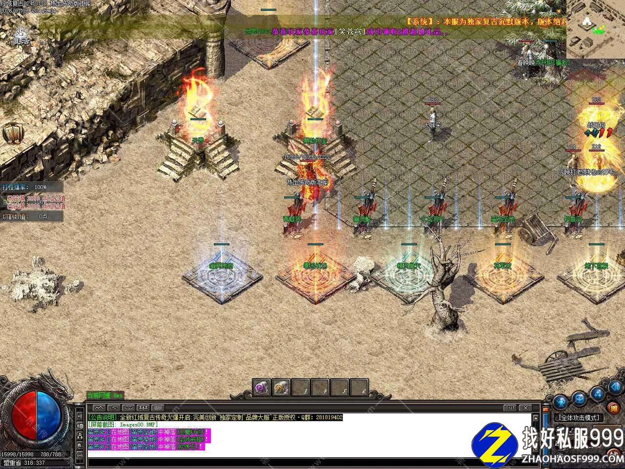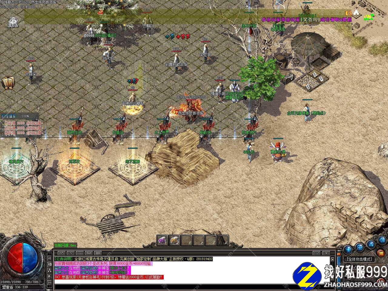 三.此版本为手动升级金币复古沉默版本,首先散人必选职业道士,然后在土城中心开启随身泡点,每秒1000经验,随后进入安全升级地图升级,弄到双倍经验之后前往各大地图找小怪或者BOSS打**手镯和**石,建议双开一个号放到安全挖矿地图挖矿,可以挖出各种材料,十分难得,三倍经验卷可与双倍经验叠加。