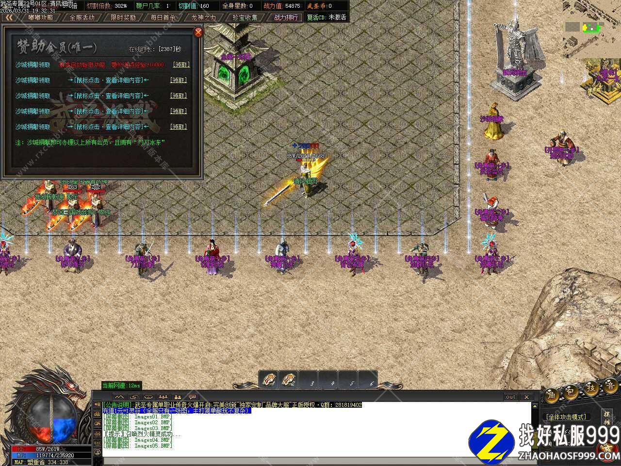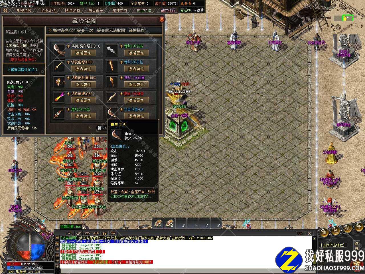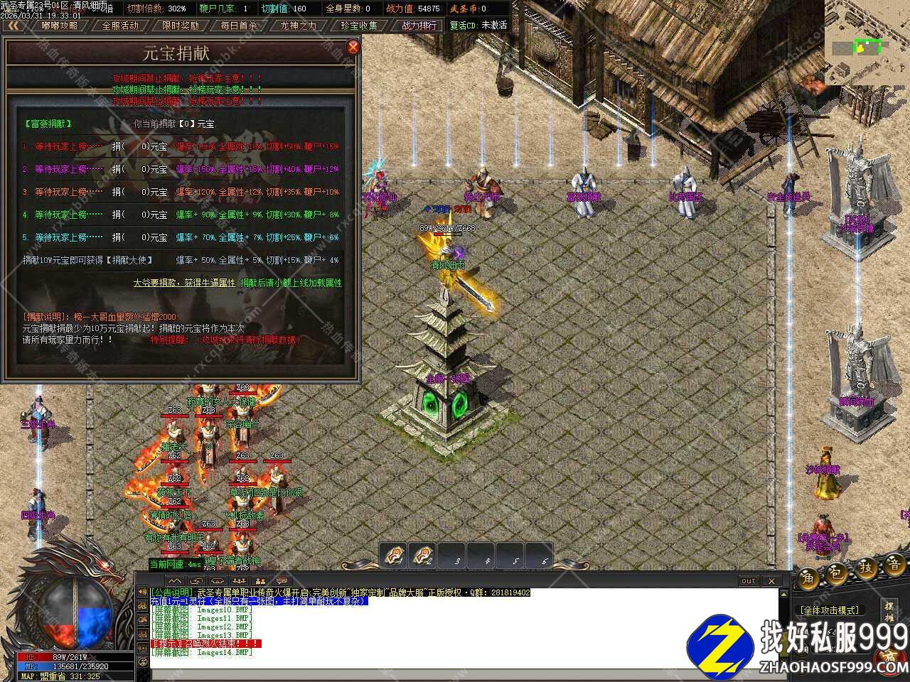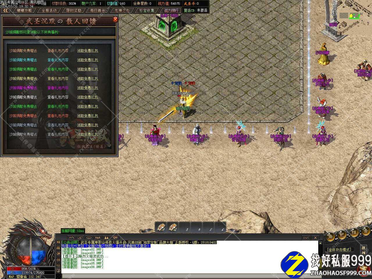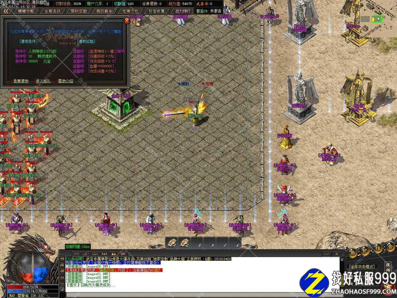 四.本服活动多多,其中土城跑酷活动开区30分钟举行,随机获得经验或者各种物品;真假雪人活动开区60分钟开启,刷新大量森林雪人,真假难辨;妖兽降临每天23点举行,妖兽现世,可爆所有物品,不要错过哦。