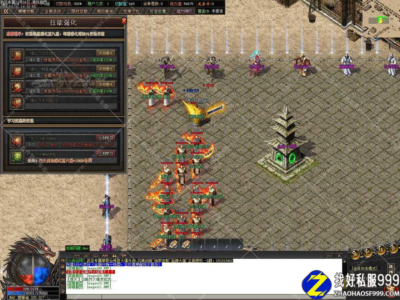 三.此版本添加了装备强化功能,每强化一级装备增加1-1点攻魔道,每件装备最高可强化至15星,全身达70]星以后更有属性加持,强化需要强化石、天宫锤、元宝等,全身强化达到150星触发HP+10000、最终切割数值增加60000、怪物BUFF几率+15%、额外附加攻击+100 ,强化魔法盾至四级等。