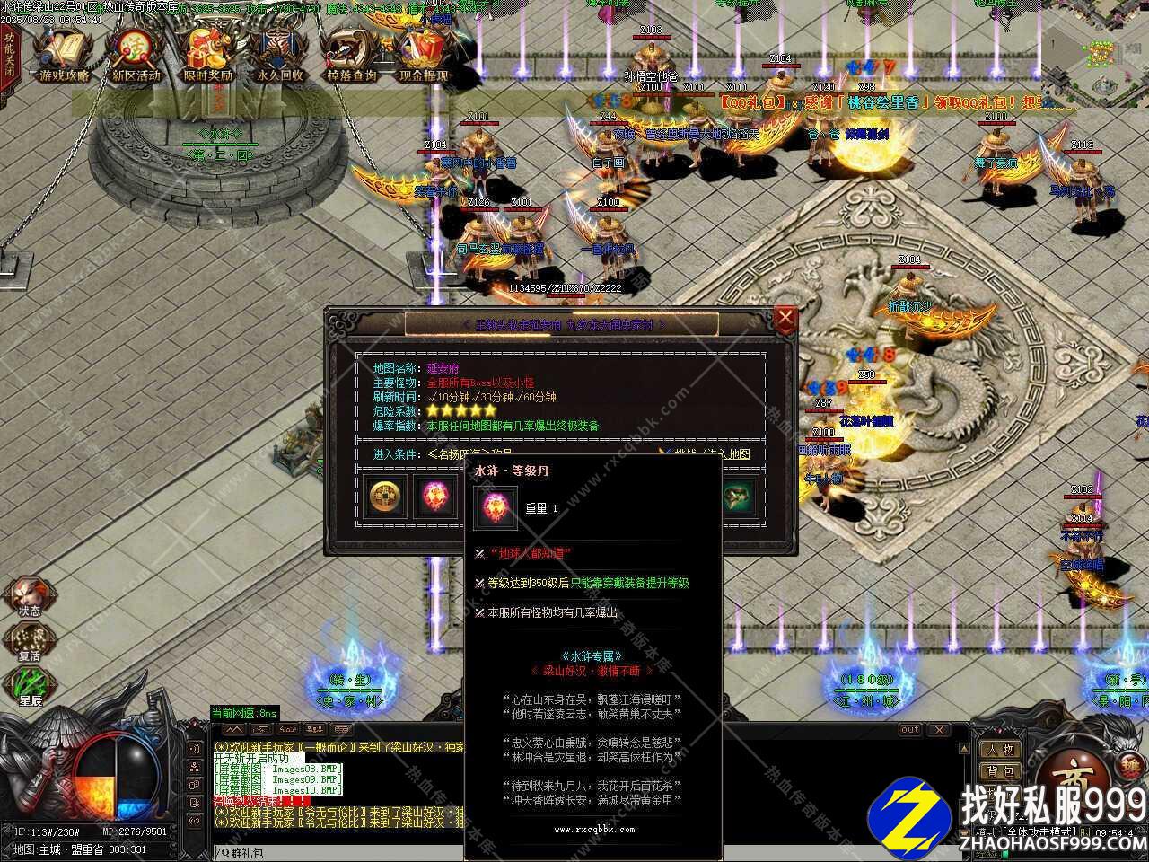 六、所有怪物打掉后都会增加打怪值,后期强化自身属性,小怪和普通Boss打死增加好汉值,副本进图开宝箱必备。全屏吸怪,全屏切割前期很重要~~~打Boss可以把聚义宝珠升高一点非常牛。