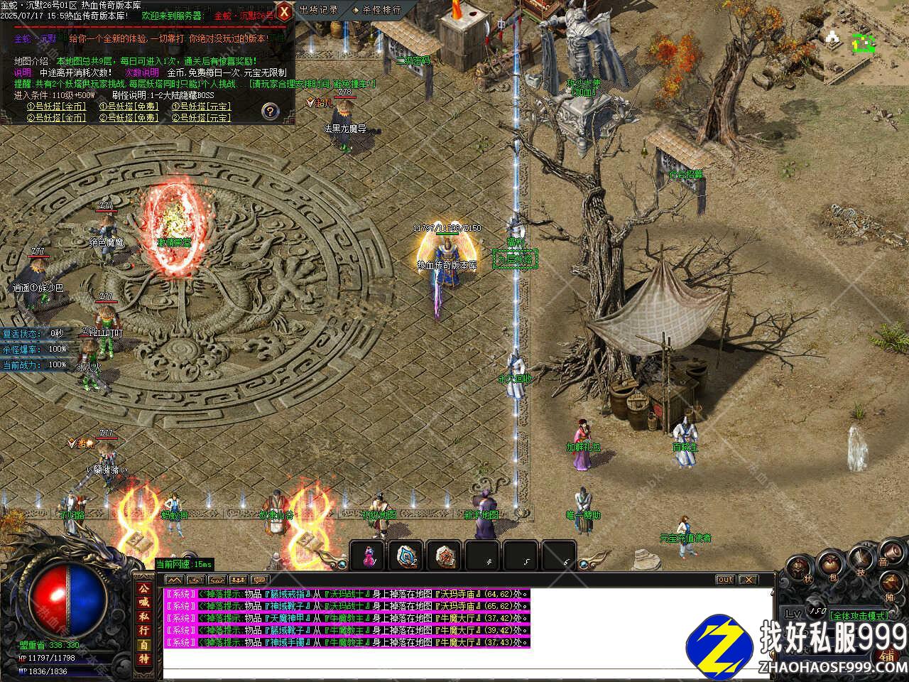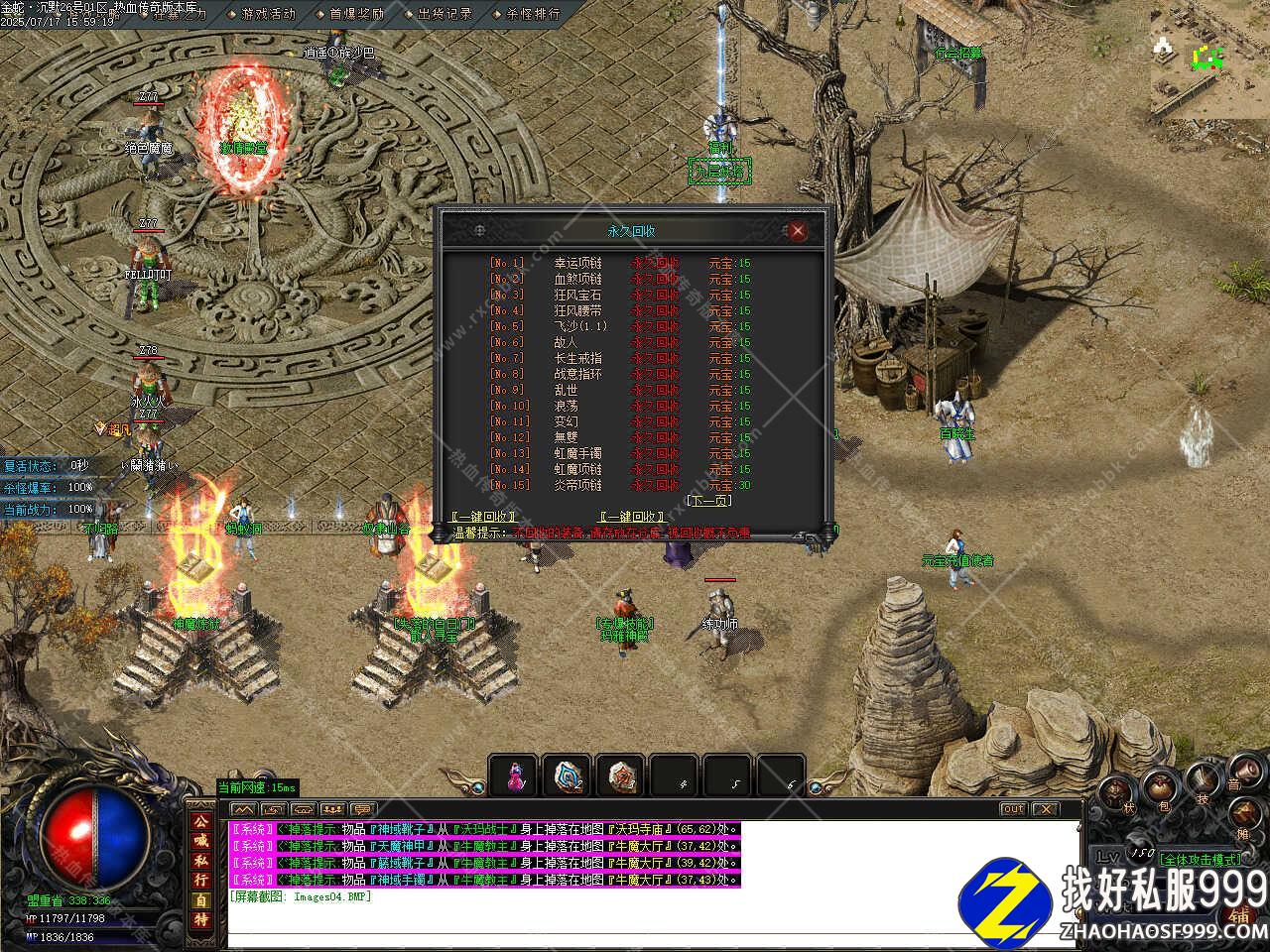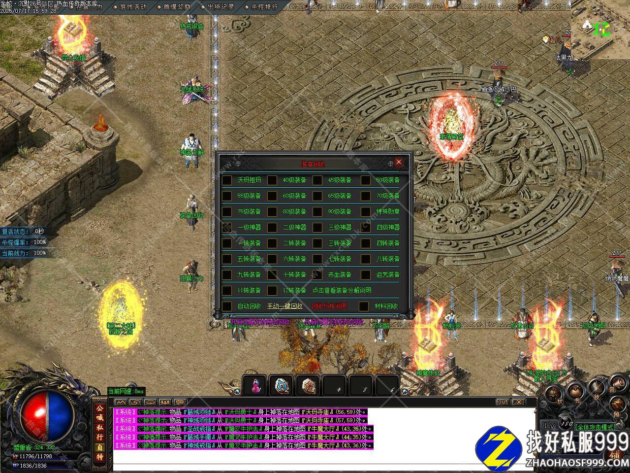 七、新增十二生肖神器强化功能,新增不能挂机的地图禁止使用随机传送石;新增置顶悬浮框,方便玩家游戏操作。