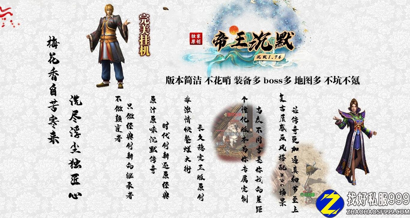 版本介绍:此版本先不要在乎爆率太高还是太低了,版本边开边更新,一般前期爆率不会太高,毕竟考虑到是慢服,耐玩度得有,开区后期会更新一些地图装备,保证游戏可玩度,剑甲均无合成,直接打怪爆。