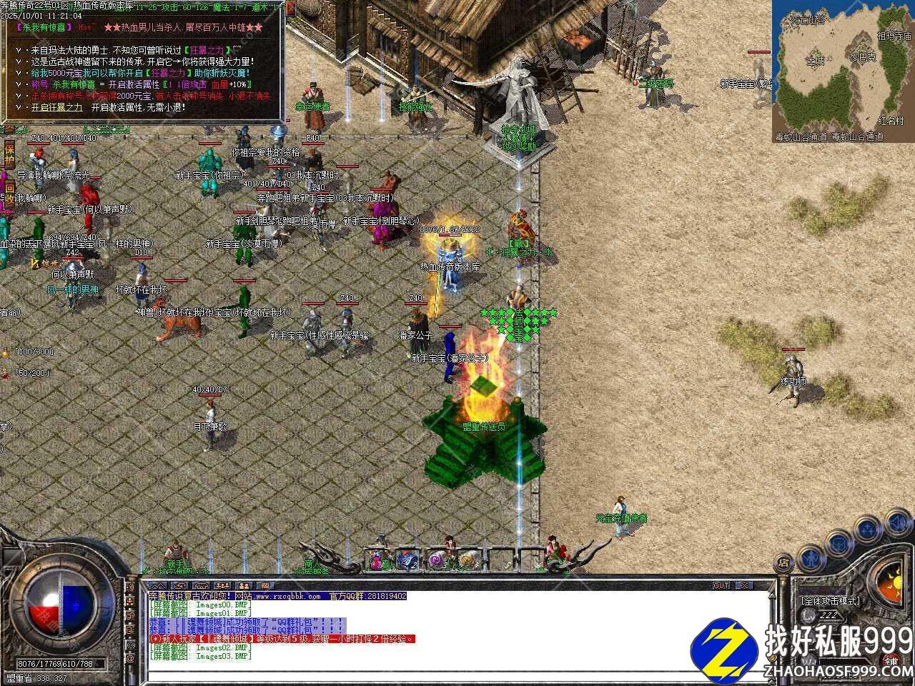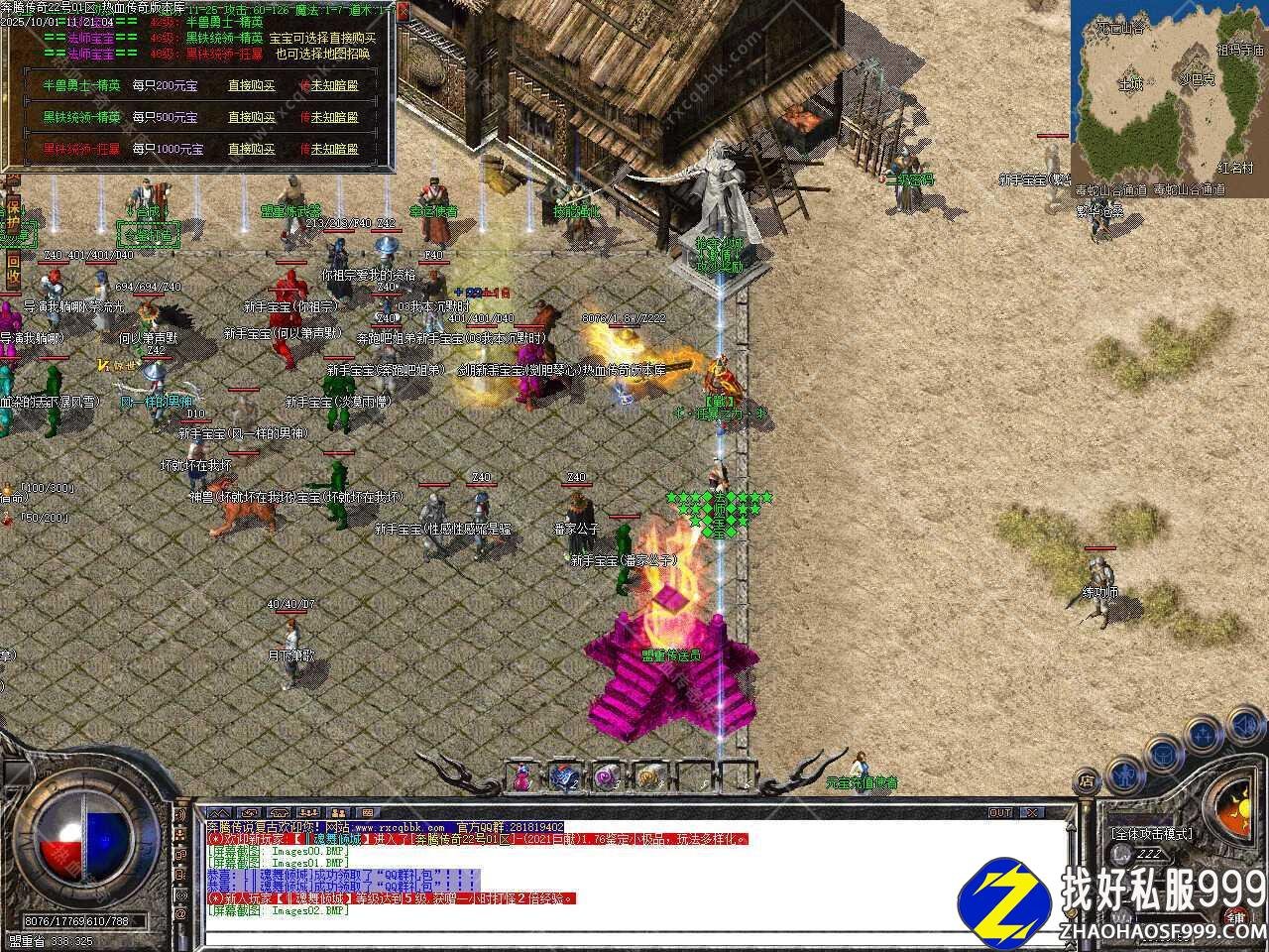 六、本服共刷新[洪荒,昊天,圣皇,伏羲]四大野外BOSS,刷新时间请关注土城(335,344)处的NPC;野外BOSS的爆率是地图BOSS的游戏材料,高阶装备,书页元宝,是玩家必抢BOSS。