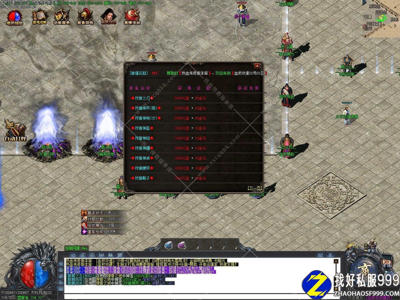 版本介绍:开区第二天下午17-18点左右合区,晚上20点开启攻城,沙奖丰厚,拿沙是传奇的经典玩法,只有拿沙才能体验到真正的热血传奇。