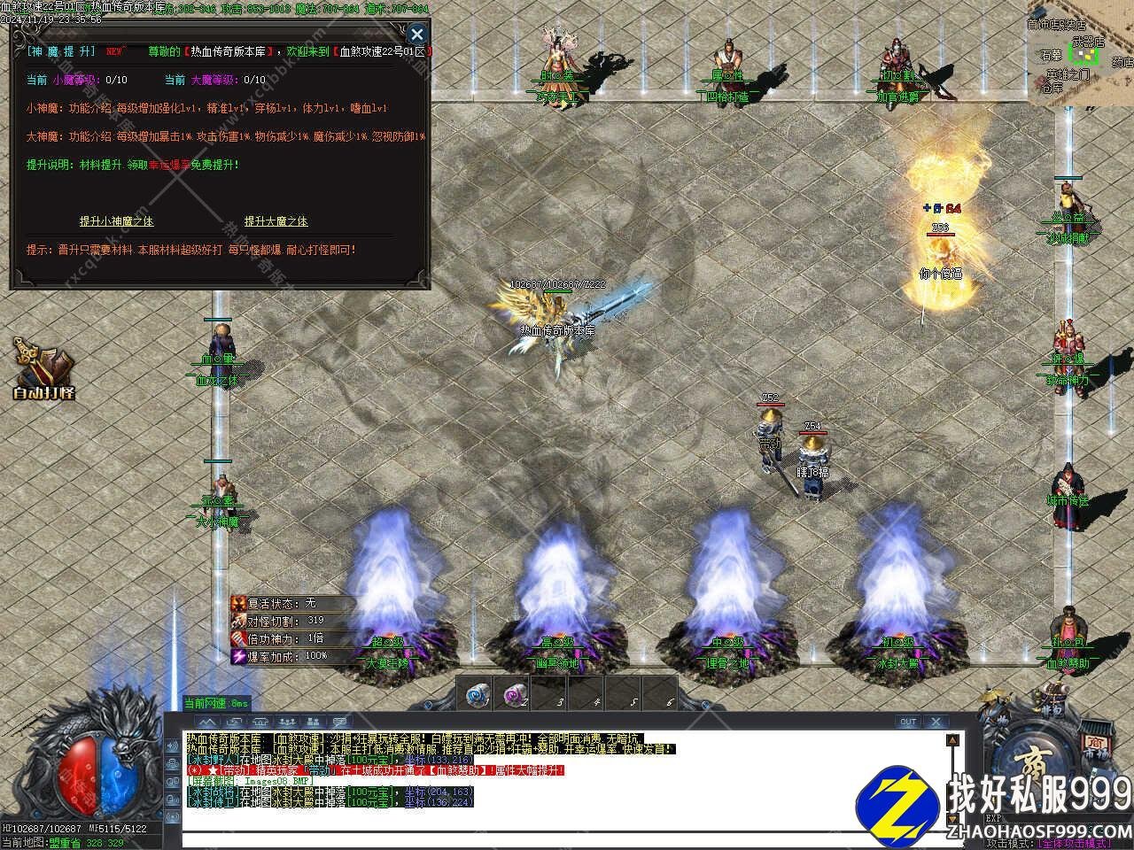 版本介绍:新区只是给玩家一个发展空间,合区才是激情的开始,请不要放弃新区发展的空间,合区后你可能抢不到怪!,本服人气比看到的要多,因为都在地图里。