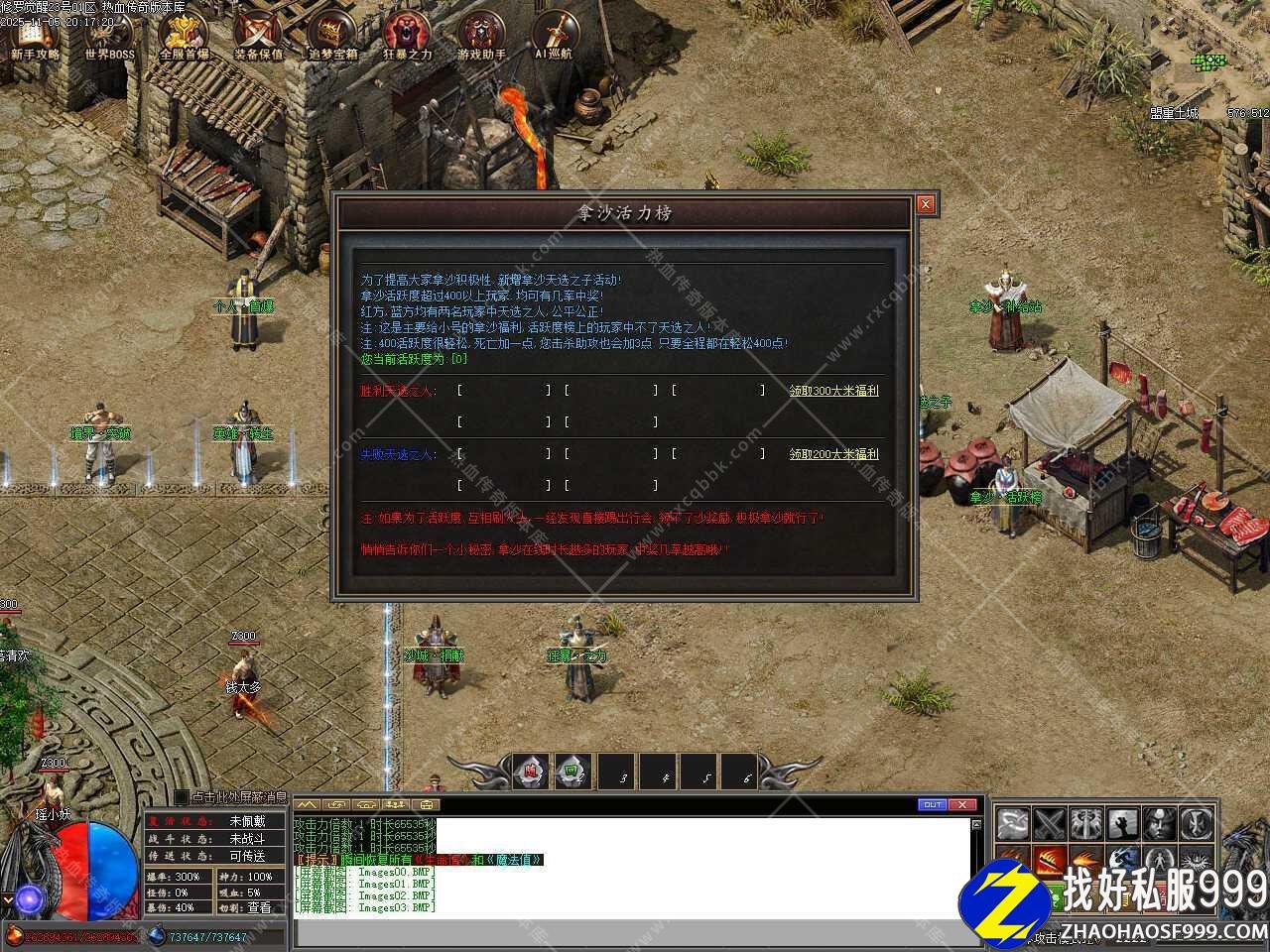 四.添加活跃值玩法,在攻沙区域,每待一分钟获得1点活跃值,在攻沙区域打掉对手加3点活跃值,在NPC那可以查看自己的活跃值,20:00-22:00期间才能获得活跃值,每分钟刷新一次,注:攻沙2小时期间活跃值达到300点才能领取沙奖。