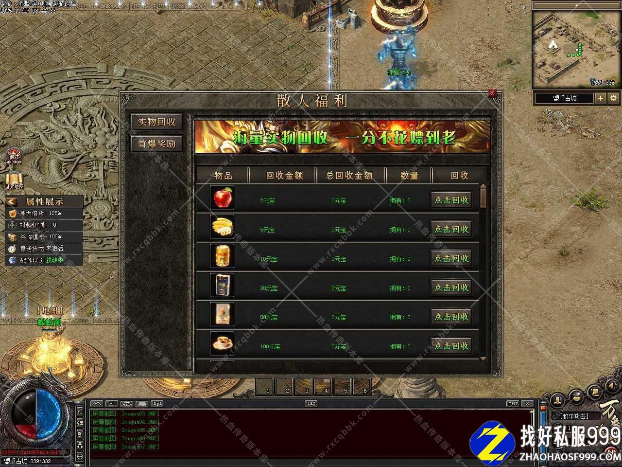 二.新增赞助技能,自动拾取技能有两种自动拾取方式、自主切换,备注:因个别版本爆率过高,或者其他因素导致爆出物品后非常卡,此技能可切换两种自动拾取方式,供大家自行切换选择;赠送自动吸怪技能(每5秒自动执行吸怪技能并获得3秒无敌状态);记录坐标技能,可记录5个坐标点,全服任意飞行,个别特殊地图会有限制使用;综合技能便捷,有上述所有功能,一键搞定方便快捷,增加智能挂机系统,注:以上所有功能均为技能效果,领取后使用技能即可生效。
