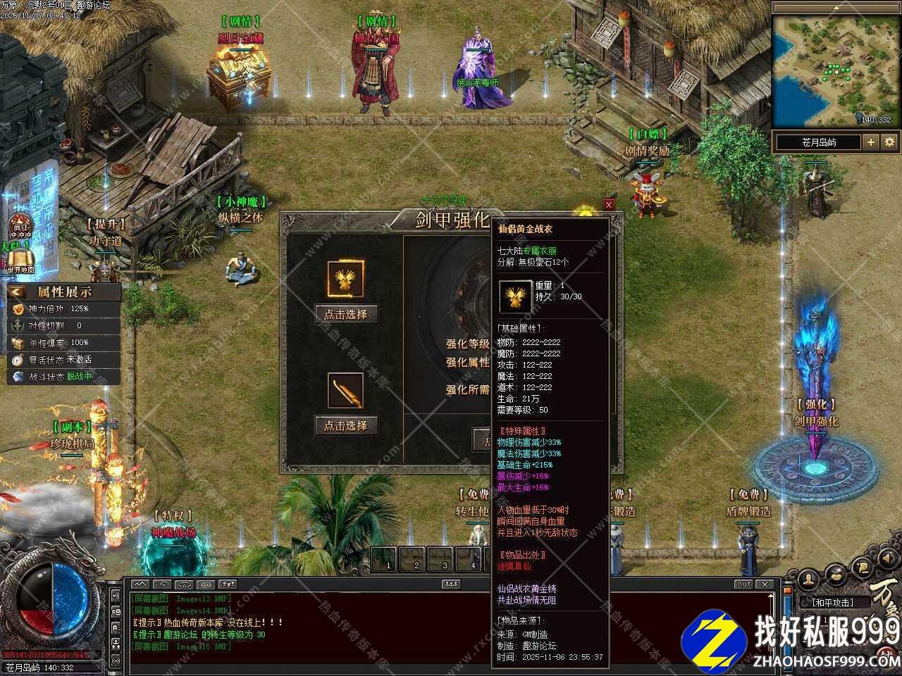 三.添加装备开光功能,每次开光必定成功,全部开光等级达到3级可获得致命一击几率+3%、致命一击伤害+3%;全部开光等级达到6级最终伤害增加+5%、最终伤害减免+5%;全部开光等级达到9级,同时角色等级达到220级后,人物等级+1,更多玩法请自行体验。