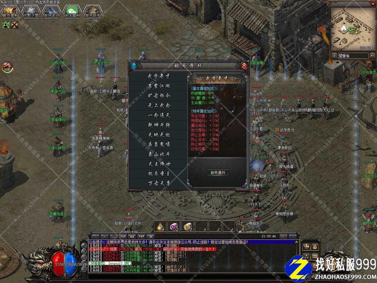 三、装备随机获得套装属性,21种套装搭配更具特色,新增百种技能铭文,技能不再单调,三职业特色突出。