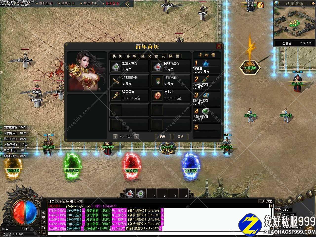 五、此版本设置200级以后可以提升等级,每打一个怪物,必爆一个等级丹,方便玩家在下地图的时候也能升级,方便快捷。