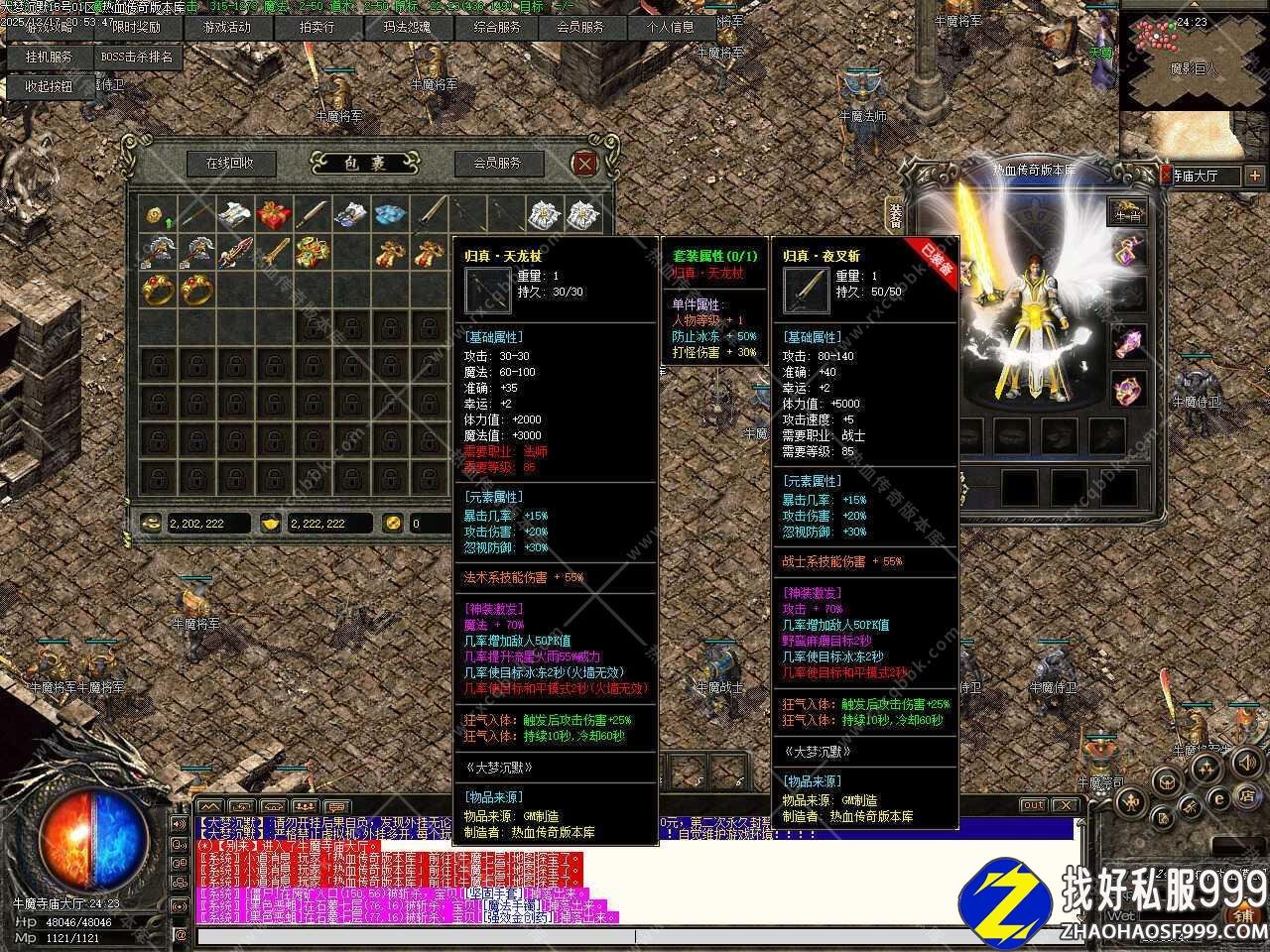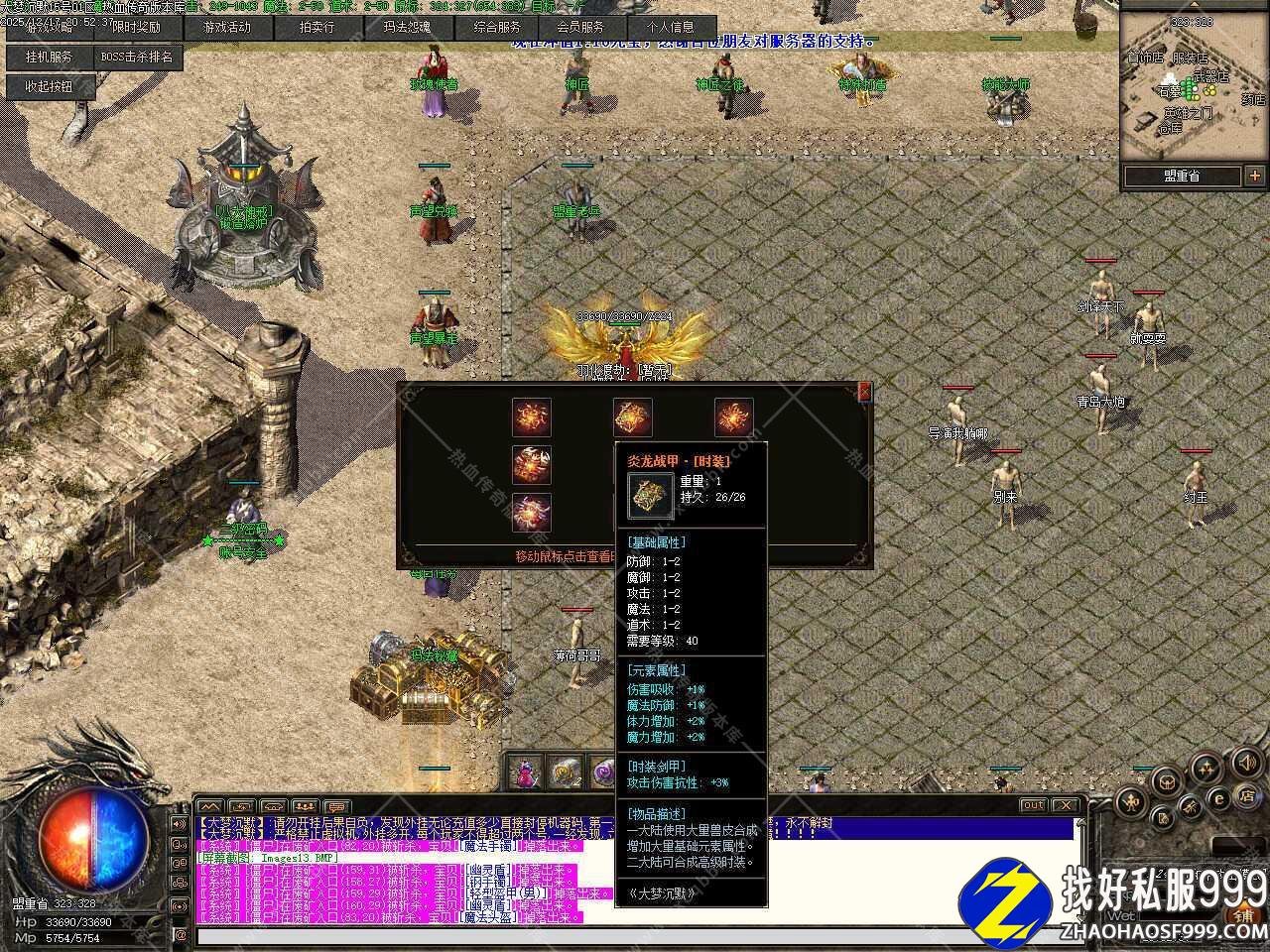 四.装备档次介绍:沃玛-祖玛-圣战-圣战至尊-加转生装备+等级装备+特殊装备+追梦神器,随地图循序渐进,慢慢发展即可。需要一点耐心,没有什么花里胡哨的功能。