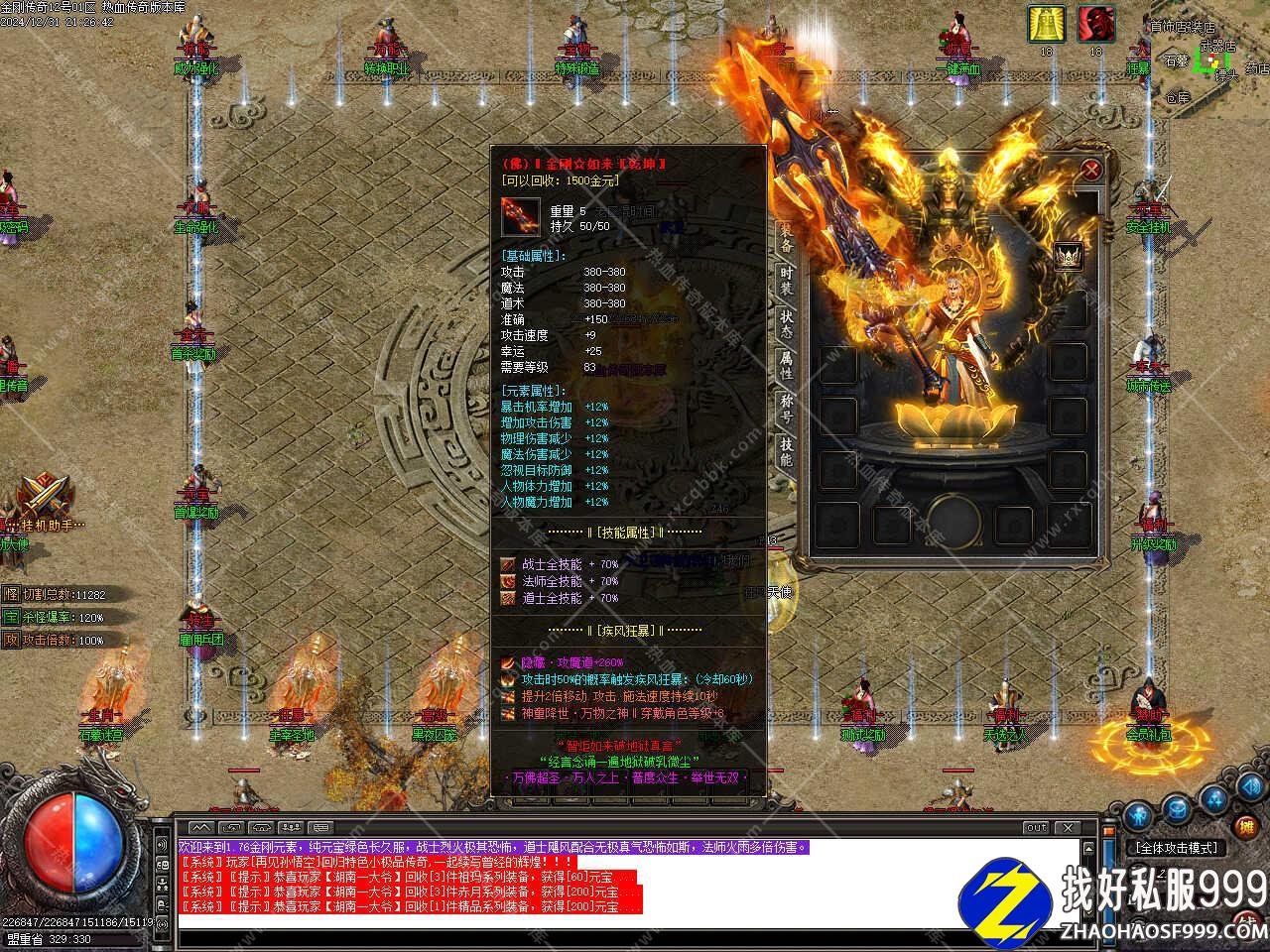 版本介绍:1.76金刚传奇,主打极品和元素,元宝服,纯绿色,1-70级泡点升级,65级以后只能各地图打经验卷升级。