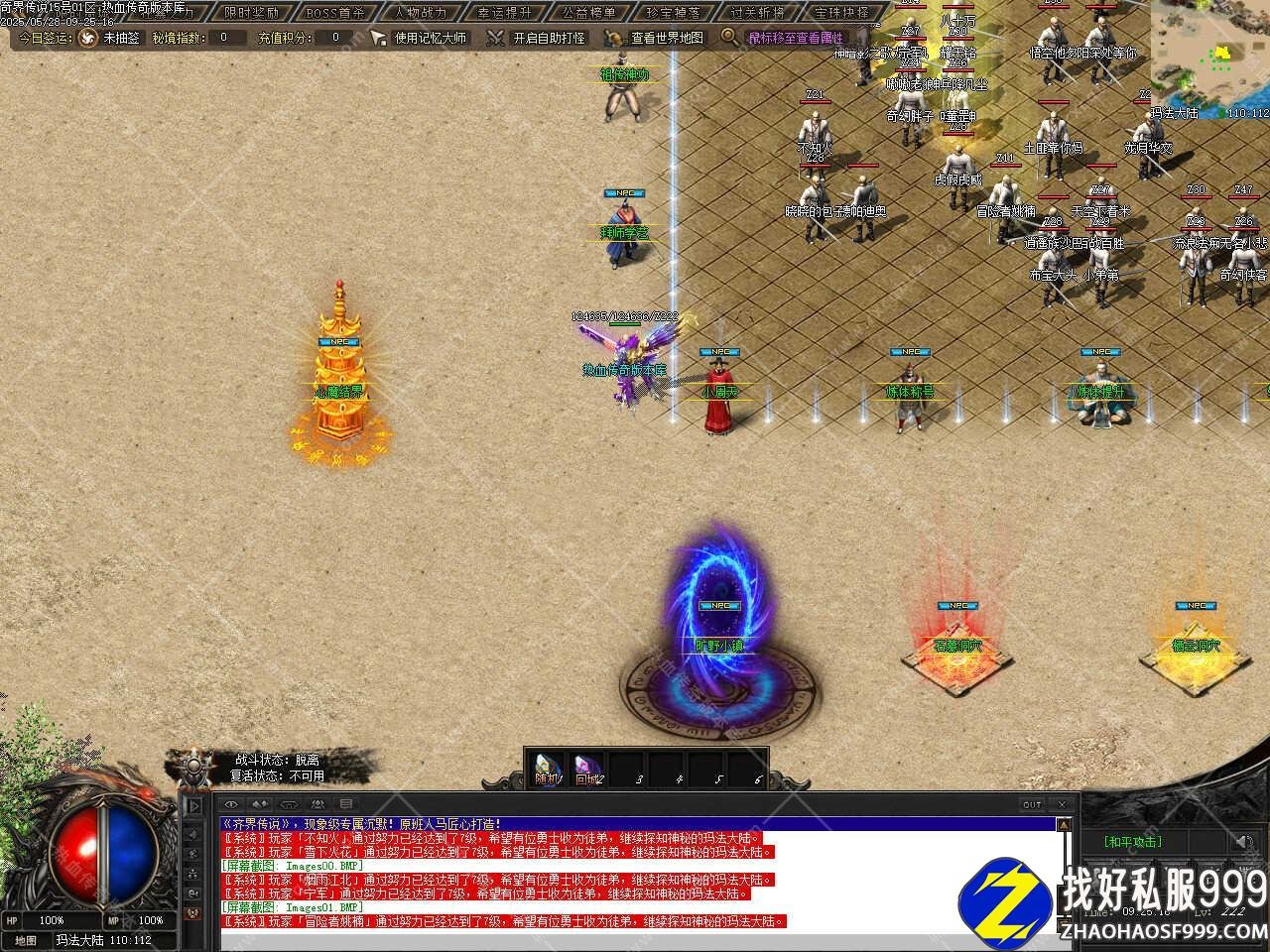 六、此传奇版本中有多个大地图,每个大地图设置要求不一样,同时每个大地图中有些功能也不一样,在游戏时可仔细看一下各大地图中的NPC设置和功能,以免需要时找不到相关功能要去哪个NPC那里,更多的功能和玩法请进版本中查看哦。